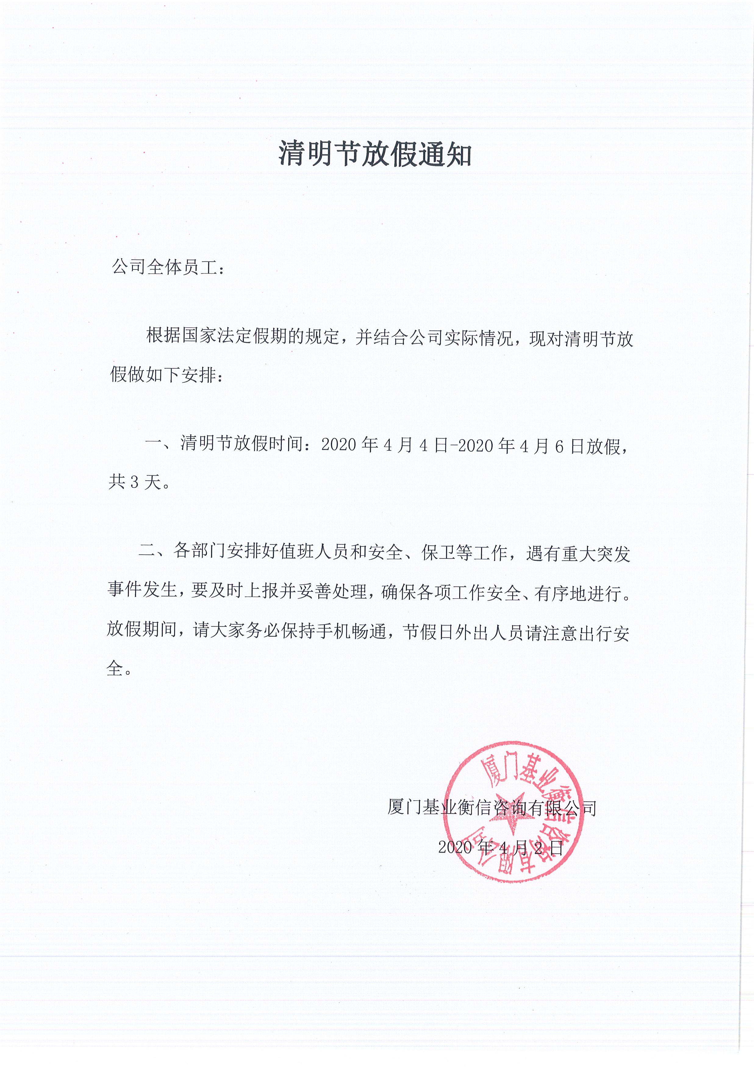 2020年清明節(jié)放假通知